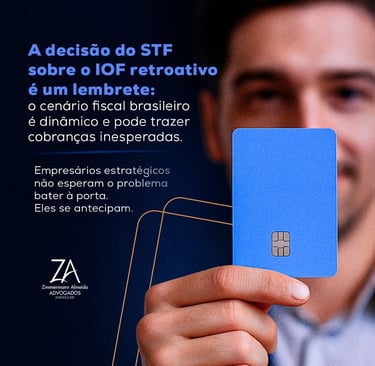 Recentemente, o Supremo Tribunal Federal (STF) decidiu que a cobrança do IOF (Imposto sobre Operações Financeiras) pode ser aplicada de forma retroativa, ou seja, o governo pode exigir o pagamento do imposto referente a períodos passados, mesmo sem aviso prévio. Essa decisão gerou grande preocupação entre empresários, pois representa uma cobrança inesperada que pode impactar diretamente o fluxo de caixa das empresas. Esse caso é um exemplo claro da imprevisibilidade do cenário fiscal brasileiro, onde mudanças repentinas podem gerar custos e dívidas que pegam o empresário de surpresa. Por isso, é fundamental estar preparado e contar com ferramentas jurídicas, como a Transação Tributária, para negociar dívidas e proteger a saúde financeira da empresa. Nós adotamos uma abordagem consultiva 360º, avaliando todas as possibilidades para garantir segurança jurídica e a melhor estratégia para o seu negócio.